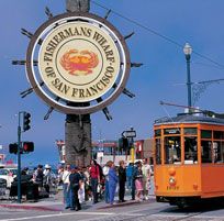 渔人码头原是意大利渔民聚集的渔港,到了60年代,由于渔获量减少,逐渐演变成观光景点。渔人码头的标志物为一个画有大螃蟹的圆形广告牌,这里聚集了购物中心,售卖各类海鲜的店铺,以及在街上表演的艺术家。如今这里已经成为了旧金山的热门观光景点,每年11月到次年6月之间,人们可以在这里吃到上好的丹金尼斯大海蟹(Dungeness Crab)。