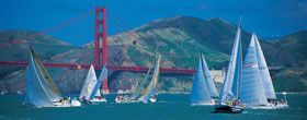 金门大桥建于1933年1月,耗资3500万美元,是世界上最大的单孔吊桥之一,长2780米,从海面到桥中心部的高度约67米。金门大桥独特鲜亮的色彩,以及独特的设计感,使其成为旧金山以及加利福尼亚州的象征,更被誉为近代桥梁工程的一项奇迹,其设计者——工程师史特劳斯的铜像被安放在桥畔,用以纪念他对美国作出的贡献。